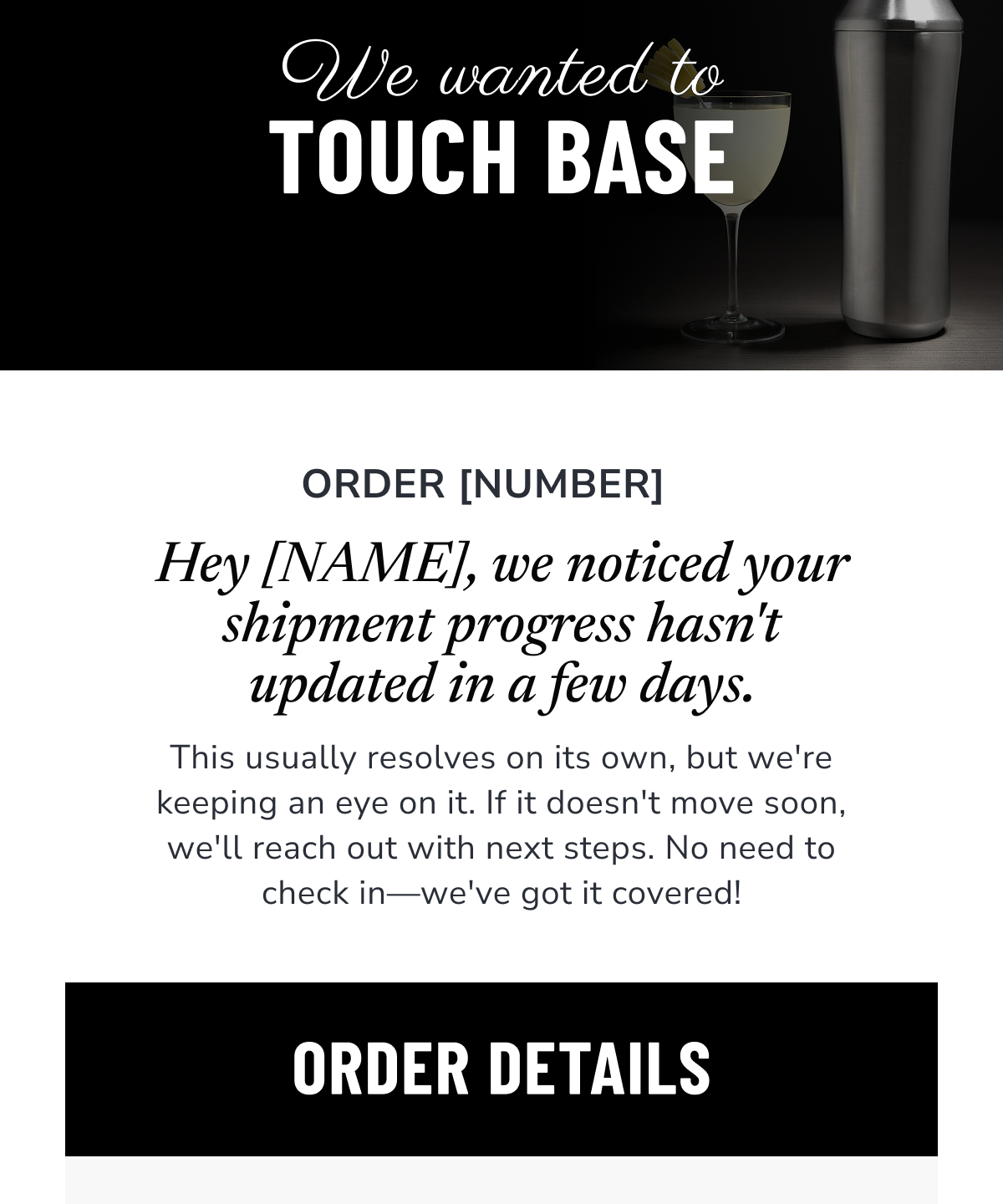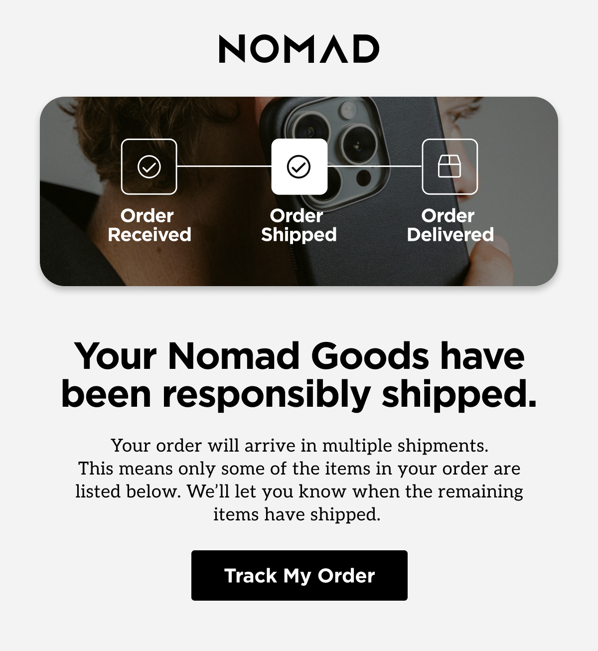 Below, we’ll walk through key types of transactional emails that can be elevated with Malomo’s branded experience. We’ve also included some extra enhancement ideas that can turn these updates into truly memorable moments.